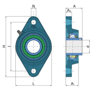 Фланцеві агрегати з підшипниками Y і овальним корпусом із сірого чавуну “N”Застосування:EXPOM: LEN 205 2TSNR: UCFL205L3