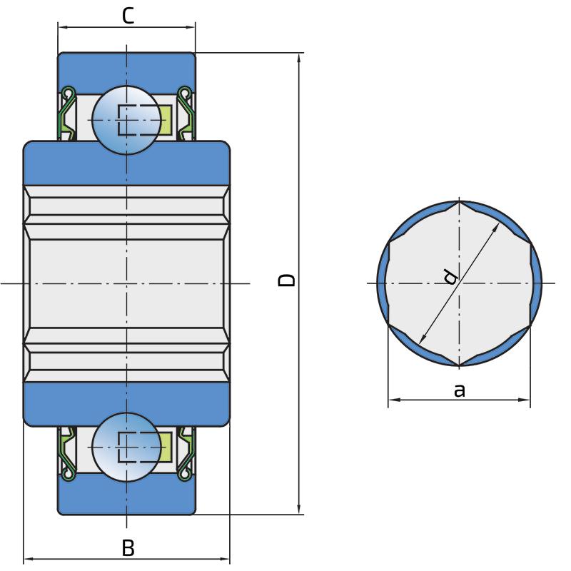 Серія з шестигранним отвором і циліндричним зовнішнім кільцемЗастосування:INA: 207KRR17JOHN DEERE: JD8650