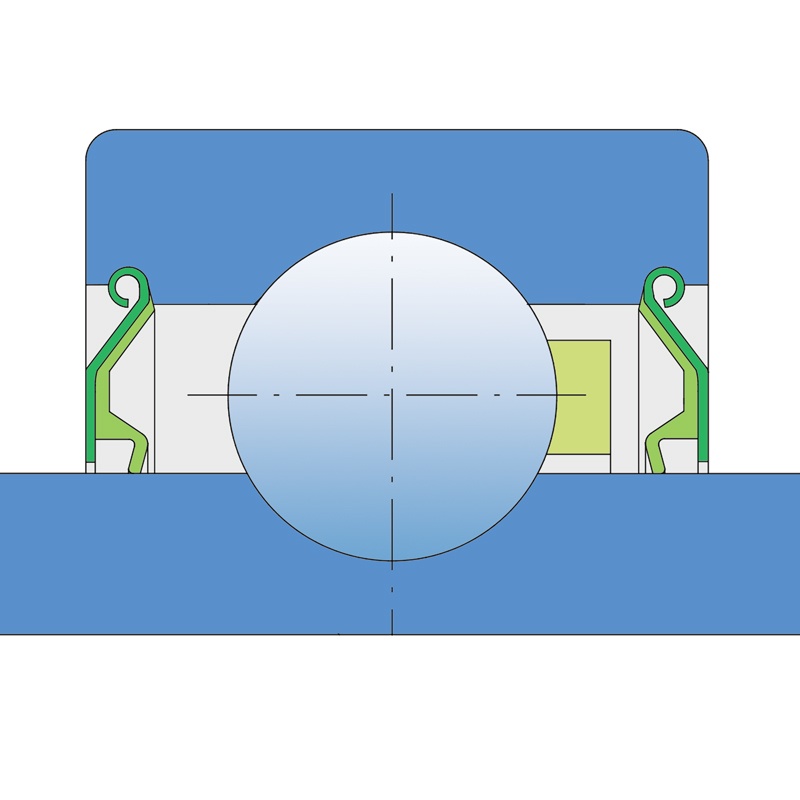 Один манжетний ущільнювач із лабіринтом між листовою частиною та гумовою кромкою, яка забезпечує контактне ущільнення. Тертя та швидкість такі ж, як у RS, але забезпечує набагато кращий захист від грубих частинок домішок.