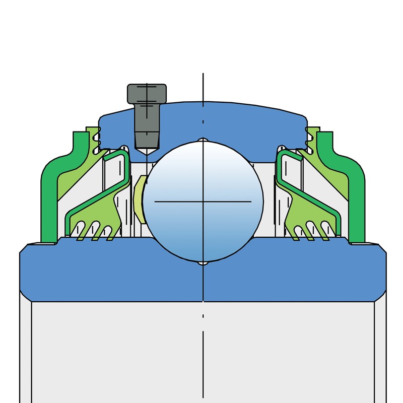 Прогумований відбійник з 3-губною манжетою з базової сторони та 3-губна манжета з прогумованим відбійником з лицьової сторони, яка піддається впливу забруднень. 3-губна манжета захищає підшипник від проникнення забруднень. Прогумований відбійник захищає манжету від механічних пошкоджень та забезпечує додаткове ущільнення.
