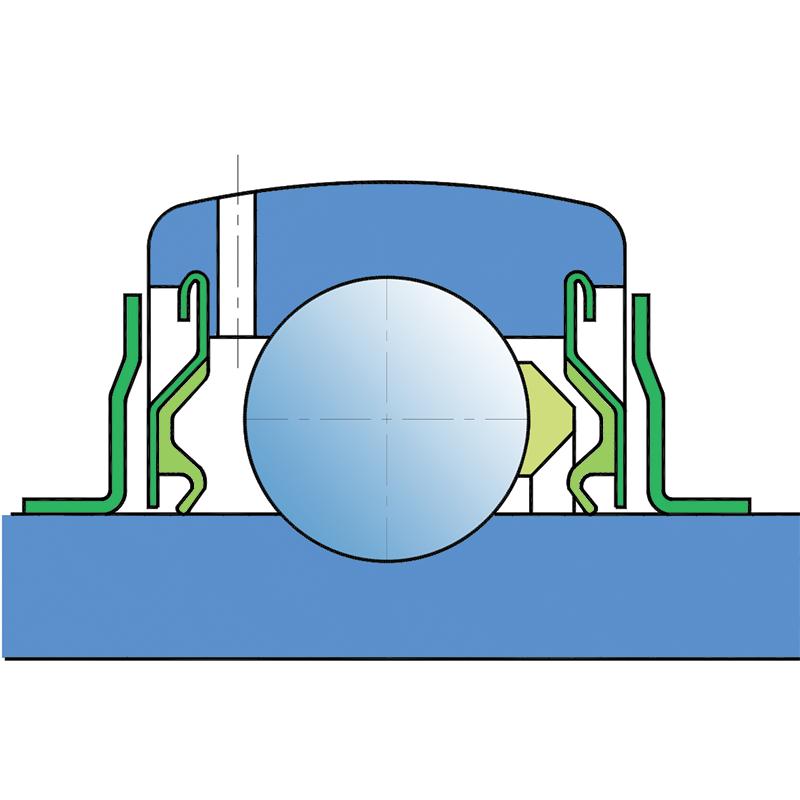 Подвійне ущільнення, захисна кришка, розміщена на внутрішньому кільці, захищає від грубих частинок і утворює лабіринт із листовою частиною ущільнення; потім ущільнення типу S, з лабіринтом між листовою частиною та гумовою кромкою, яка забезпечує контактне ущільнення.