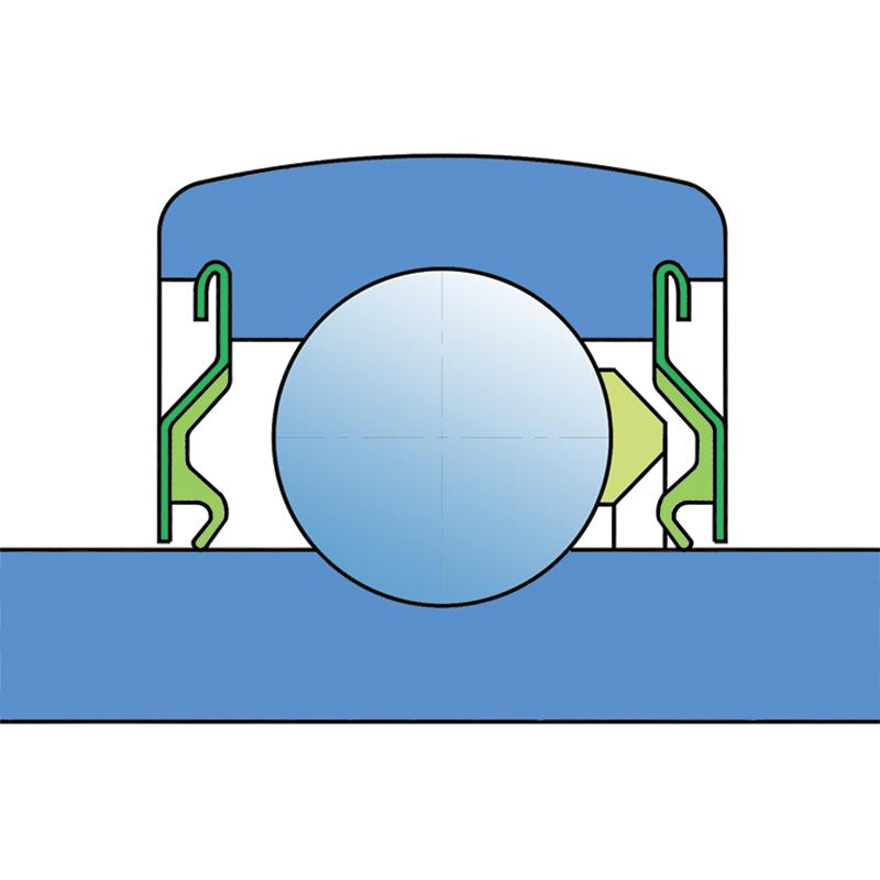 Один манжетний ущільнювач із лабіринтом між листовою частиною та гумовою кромкою, яка забезпечує контактне ущільнення. Тертя та швидкість такі ж, як у RS, але забезпечує набагато кращий захист від грубих частинок домішок.