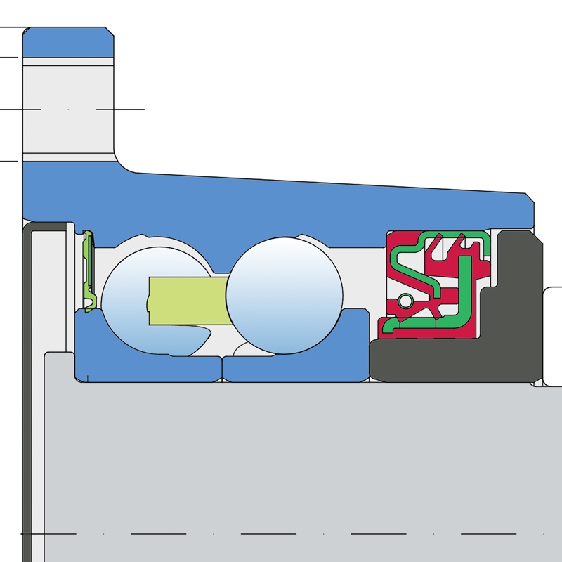 Екран з листового металу та ущільнення RS на боці основи та ущільнення Dirtblock та кована накладка на передній стороні, яка піддається впливу забруднень.