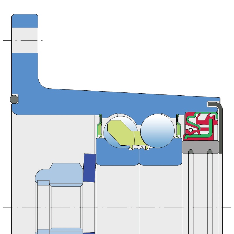 Ущільнююче кільце та S-ущільнення з боку основи та S-ущільнення, ущільнення Dirtblock із металевим екраном на передній стороні, яка піддається впливу забруднень. Ущільнююче кільце та S-ущільнення разом із прикріпленим диском усувають можливість забруднення з боку основи. Ущільнення Dirtblock розроблено для важких умов роботи. Зовнішній діаметр наполовину металевий – наполовину гумовий забезпечує надійне утримання ущільнення в отворі та покращує ефективність ущільнення. Внутрішній діаметр покритий гумою, що покращує ефективність ущільнення та полегшує установку. Таке ущільнення забезпечує максимальний захист від рідких або твердих забруднень, що значно подовжує термін служби підшипника.