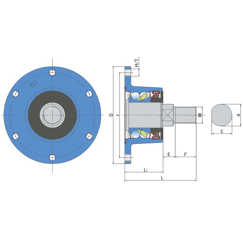 Необслуговуваний підшипник із вбудованим фланцем для жорсткого обробітку ґрунтуЗастосування:F.LLI MARINELLI: IL60-140/6T-M27AGRO LOWENZAHN: IL60-140/6T-M27